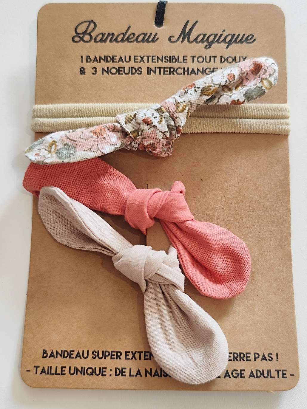 Craquez pour ce jolie bandeau extensible tout doux et ses 3 nœuds interchangeables pour assortir à toutes ses tenues !