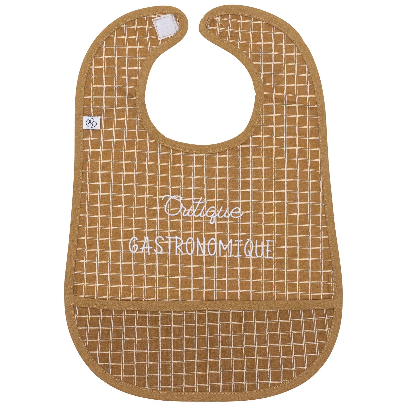 Bavoir coton enduit “Critique gastronomique” carreaux caramel – BBetCO