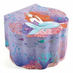 Jolie boîte à musique en forme de coquillage finement décorée où se trouve à l’intérieur une sirène. Un tiroir est intégré à la boîte à musique pour permettre à votre enfant d’y ranger ses secrets ou ses bijoux.