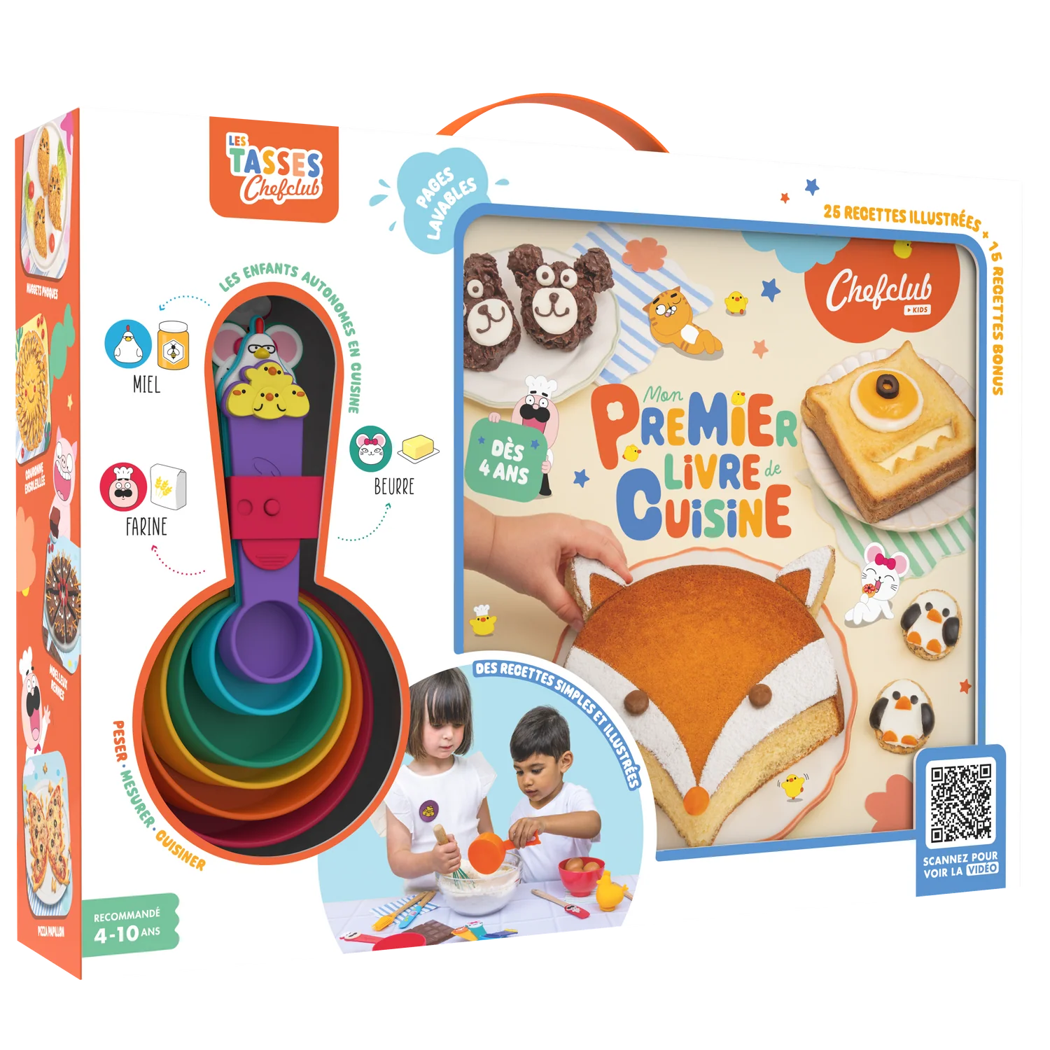 Initiez votre enfant à la cuisine avec ce coffret cuisine enfant Chefclub, ludique et facile à utiliser. Grâce aux tasses doseuses illustrées et au livre de 25 recettes simples, les enfants apprennent à cuisiner en toute autonomie avec des ingrédients du quotidien.
