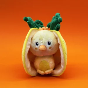 Derrière son acidulé ananas jaune se cache un adorable poussin prêt à vivre mille aventures. Grâce à son système zippé ingénieux, la peluche se transforme facilement : une véritable peluche évolutive qui stimule l’imagination des enfants.