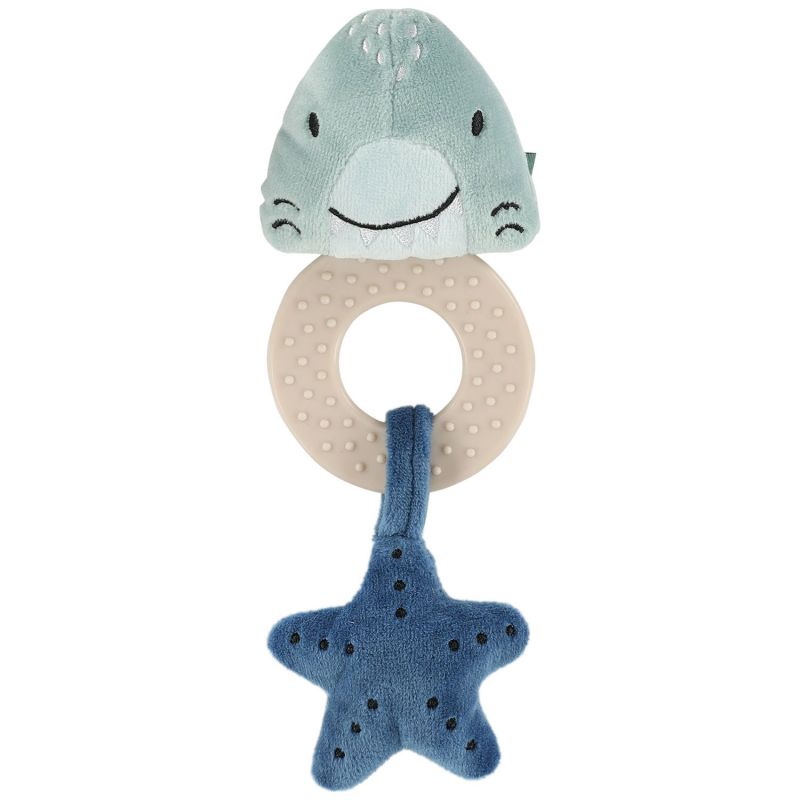 Véritable jouet 2 en 1, le petit anneau en silicone souple à mordiller sera parfait pour soulager les poussées dentaires et le petit visage en peluche à l’effigie du requin sera facilement manipulable et ravira votre bout de chou.