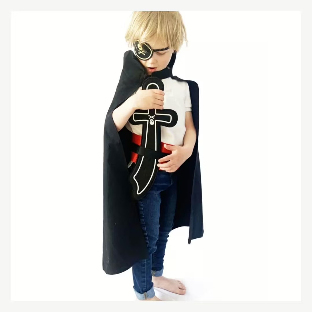 - D’une ceinture en feutrine ajustable à la taille grâce à un patch velcro, avec 2 passants pour y glisser le sabre