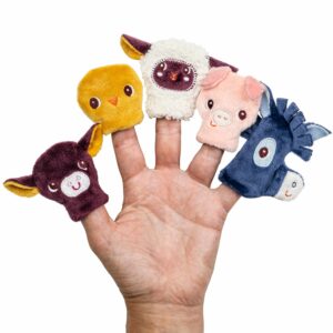 Avec ce doux livre d’activités votre tout petit Kids découvre les animaux de la ferme et leurs petits. Accompagné de 5 marionnettes à doigts, ce livre en tissu promet de bons moments de partage tout en permettant de développer la vue, la motricité et la logique.