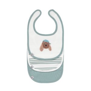 Le détail trop mignon en plus : le joli chien brodé en relief sur l’un des bavoirs.