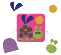Un loisir créatif à réaliser pas à pas avec des pièces de feutrine autocollantes à utiliser comme des gommettes. 4 jolis tableaux à créer avec une chenille, un papillon, une tortue et un escargot.