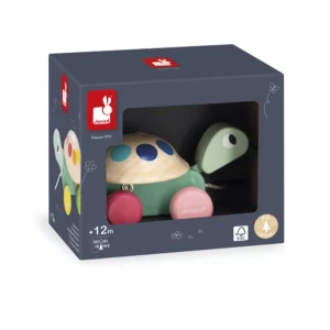 Pensée pour les petites mains, la tortue est équipée d’une ficelle de 50 cm facile à attraper. Ses roues silencieuses avec caoutchouc antidérapant permettent de jouer sans bruit et protègent également les sols.