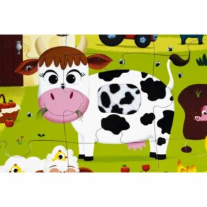 Voici un puzzle géant de 20 pièces en carton rigide avec 7 pièces tactiles pour éveiller les sens des enfants de 3 à 6 ans avec le pelage de la vache, du mouton, imitation queue de lapin, cochon, canard, crête de coq, grenouille. Des illustrations aux couleurs vives, des pièces texturées et un poster du puzzle, voici le mélange parfait pour gâter les enfants. Une très belle idée de cadeau ludique et éducative pour les enfants.